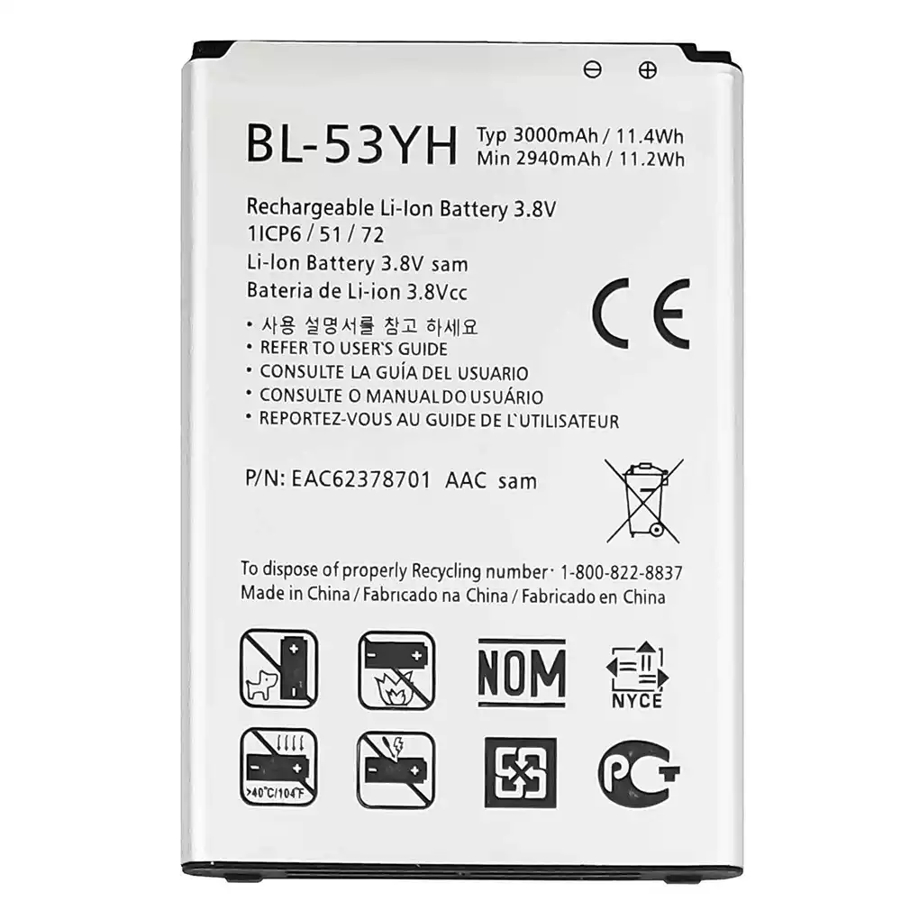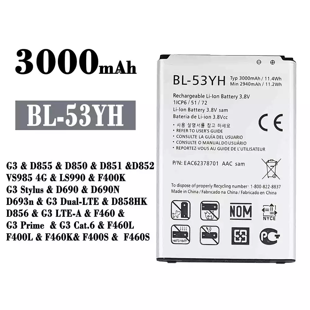 Baterija BL-53YH tinka LG G3 / D855 / D850 / D851 / D852 / VS985 4G / LS990 / F400K / G3 Stylus / D690 / D690N / D693n / G3 Dual-LTE / D858HK / D856 / G3 LTE-A / F460 / G3 Prime / G3 Cat.6 / F460L / F400L / F460K / F400S / F460S