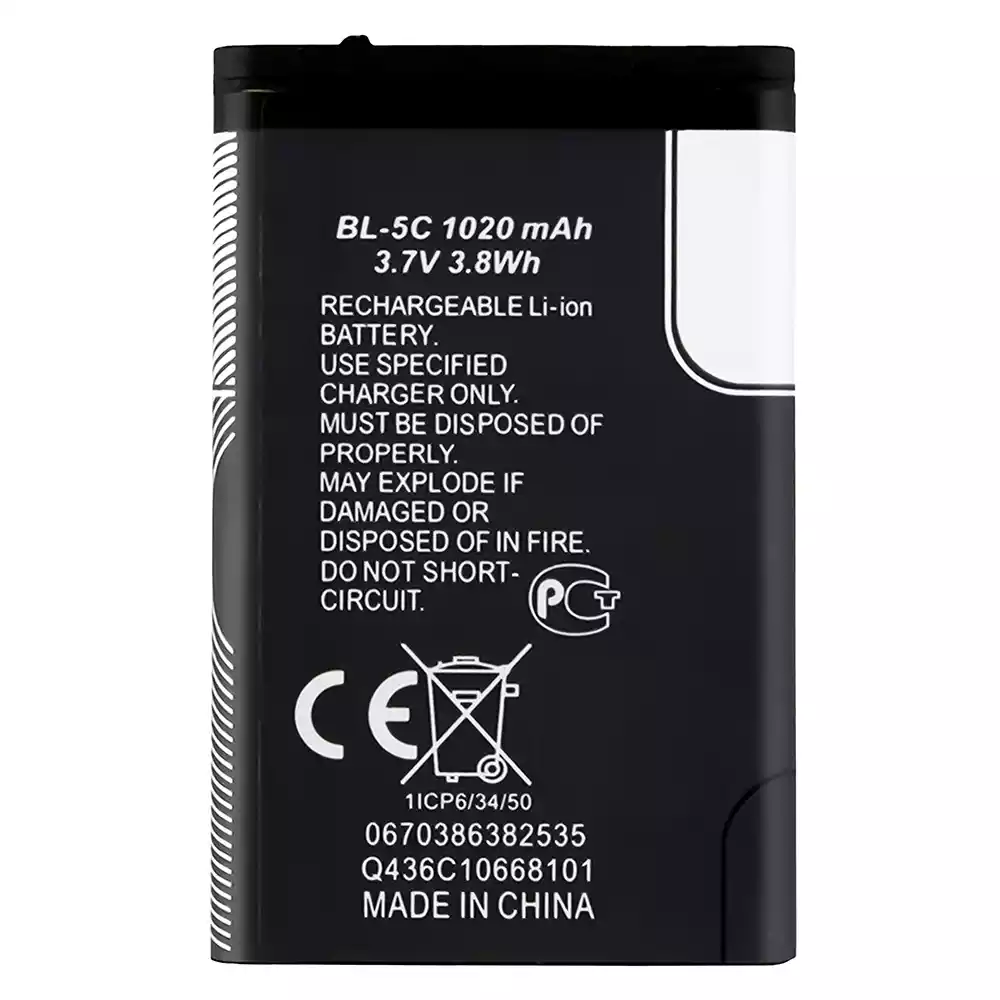 Baterija BL-5C tinka Nokia Nokia 1101 / 1100 / 1110 / 1110i / 1112 / 1200 / 1208 / 1280 / 1600 / 1650 / 2310 / 2600 / 2700 / 3100 / 3110 / 3120 / 5130 / 6030 / 6230 / 6230i / E50 / E60 / N70 / N71 / N72