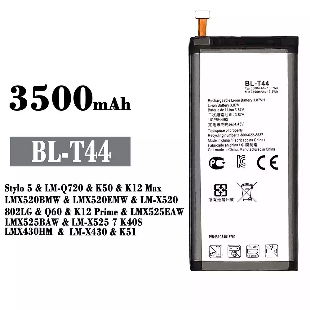 Baterija BL-T44 tinka LG Stylo 5 / LM-Q720 / K50 / K12 Max / LMX520BMW / LMX520EMW / LM-X520 / 802LG / Q60 / K12 Prime / LMX525EAW / LMX525BAW / LM-X525 7 K40S / LMX430HM / LM-X430 / K51