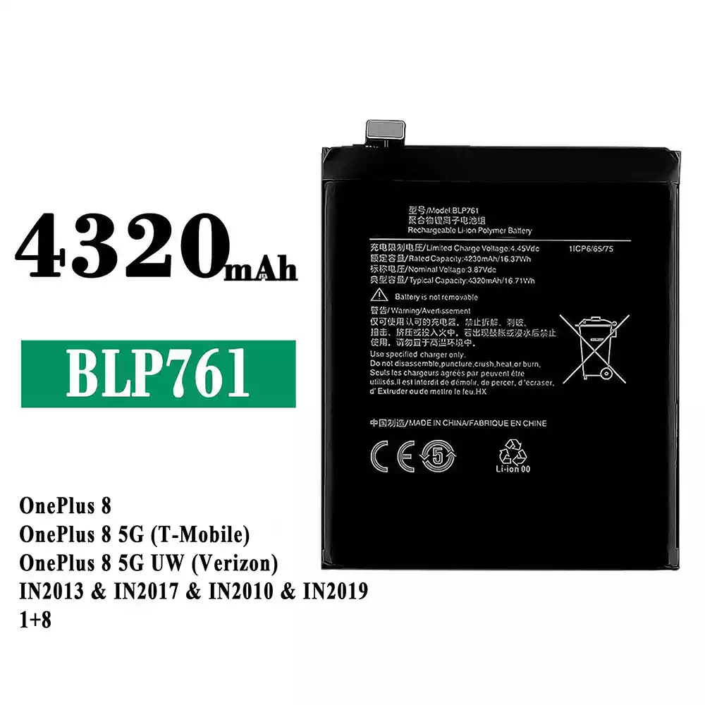 Baterija BLP761 tinka OPPO OnePlus 8 / OnePlus 8 5G (T-Mobile) / OnePlus 8 5G UW (Verizon) / IN2013 / IN2017 / IN2010 / IN2019 1+8