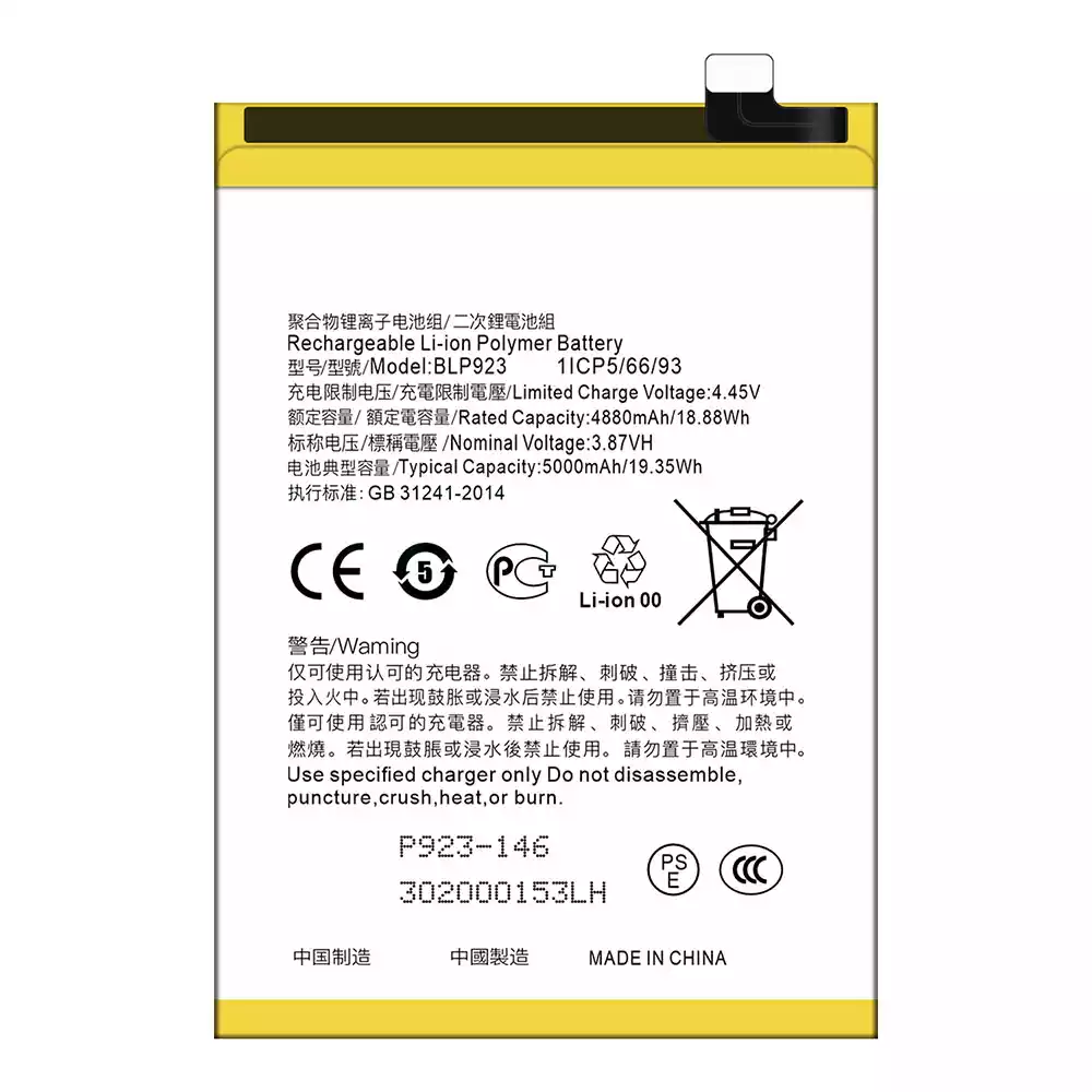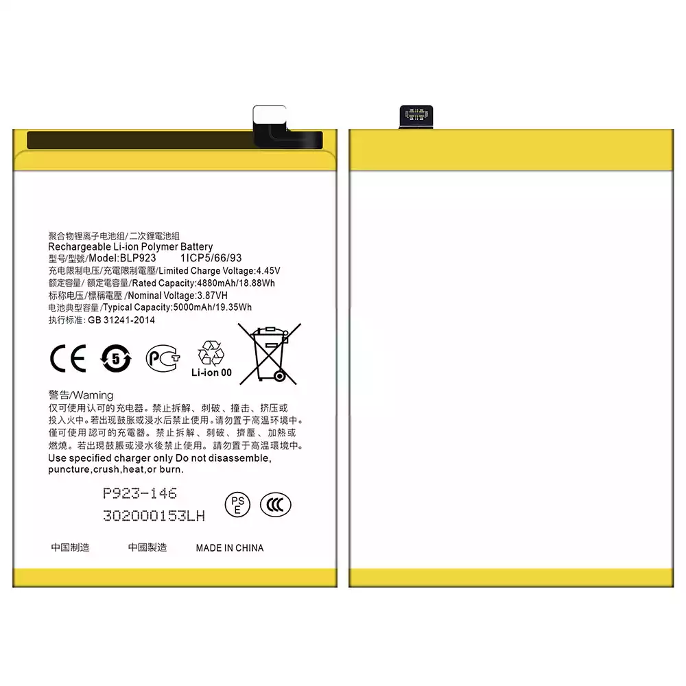 Baterija BLP923 tinka OPPO A57 2020 /A57 4G 2022 /A57 2022 /A77 4G /A77 5G /A77s /A78 5G /A97 5G / K10 5G / OnePlus Nord N20 SE /OnePlus Nord N300 5G /Realme C51