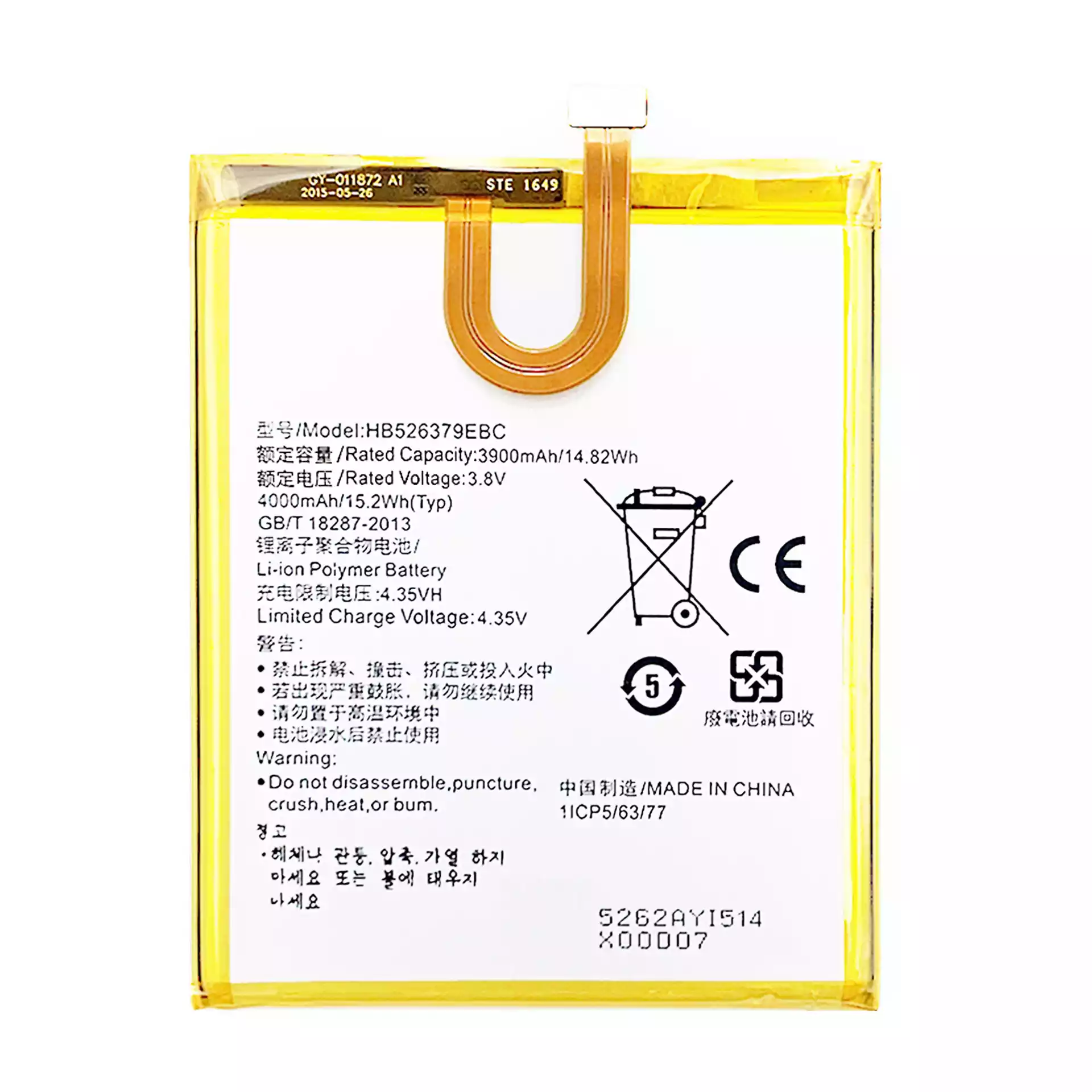 Baterija HB526379EBC tinka HUAWEI Y6 Pro / Y6 Pro 2015 / Honor Play 5X 2015 / Enjoy 5 2015 / Honor 4C Pro