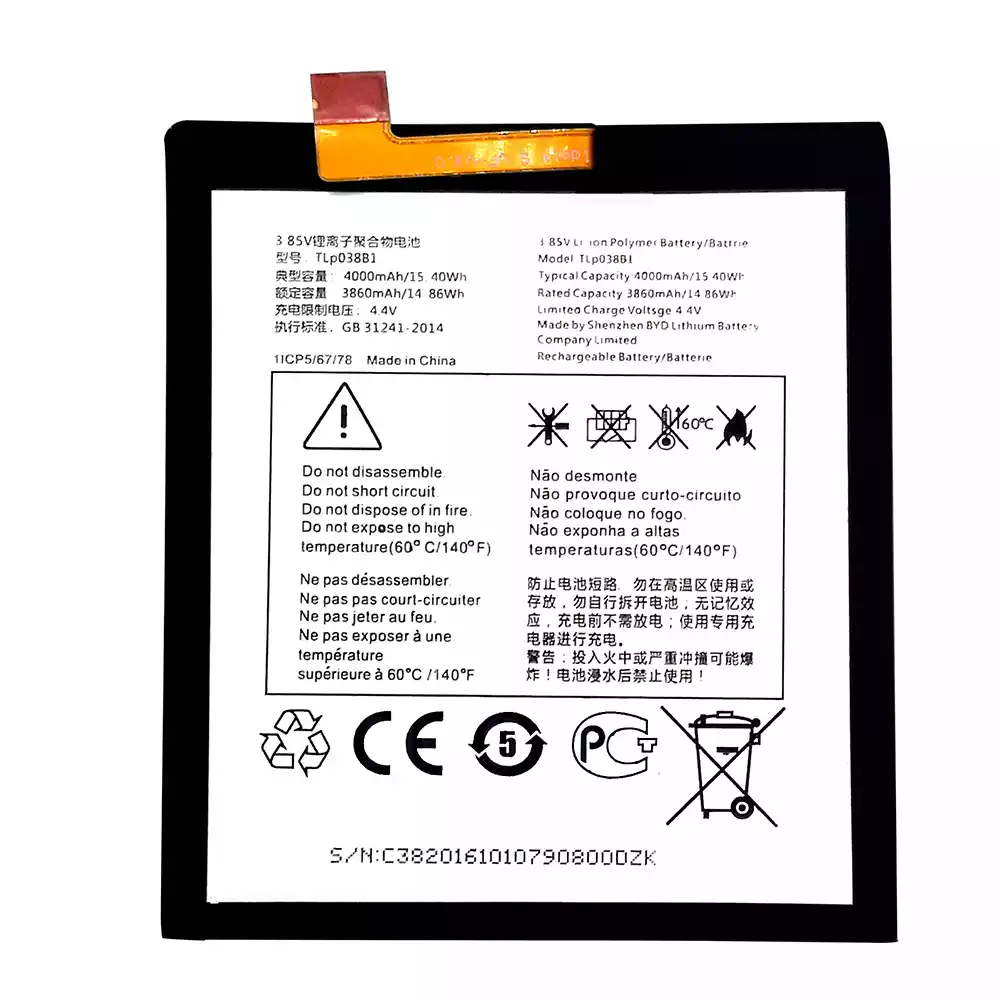 Baterija TLP038B1 tinka Alcatel A7-A7 LTE /OT-7071DX/OT-5090Y/OT-7071D